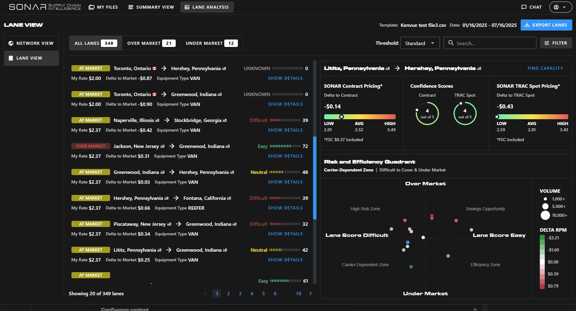 Risk and Efficiency Quadrant: Each lane is automatically categorized into one of four quadrants to drive smarter negotiation and reallocation strategies:
